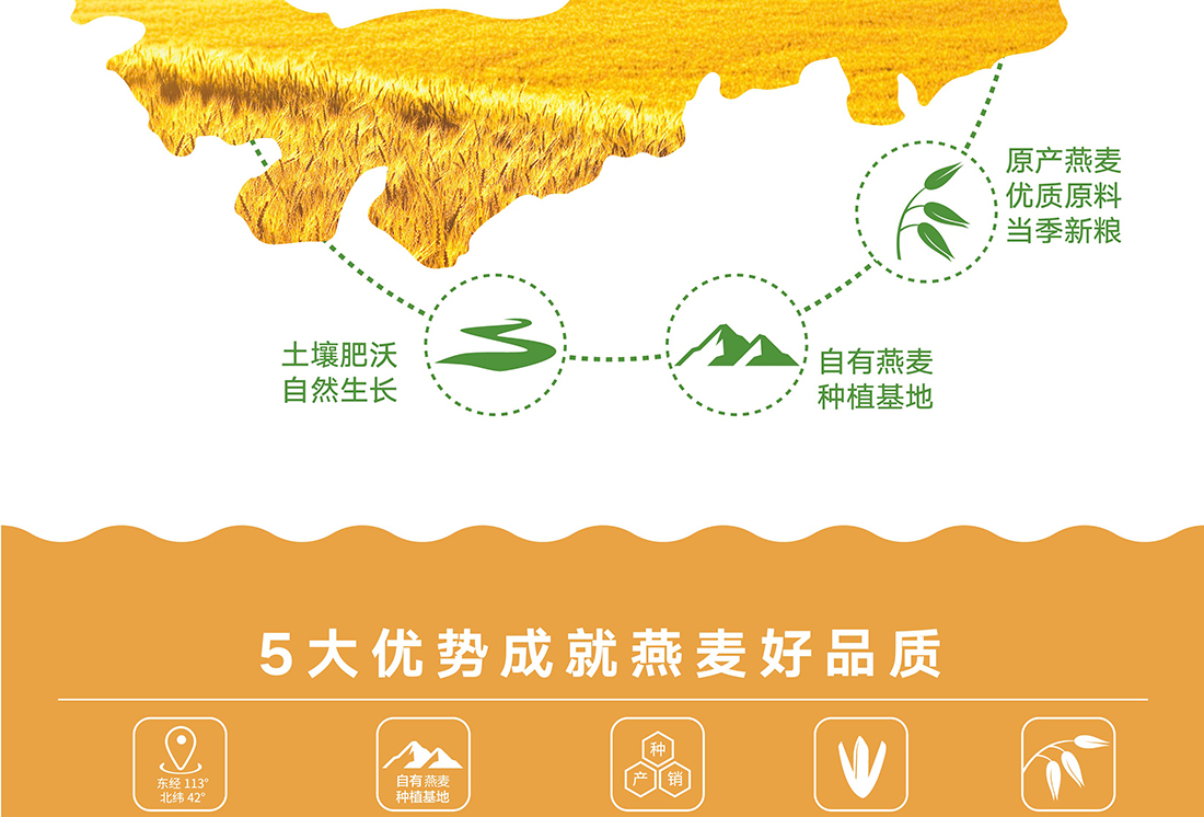 內(nèi)蒙古,世界裸燕麥起源地之一;陰山源生燕麥在此初生滿足生長規(guī)律一切所需,高寒、高海拔、日照充足;遵循自然法則,靠天滋養(yǎng),自然生長;