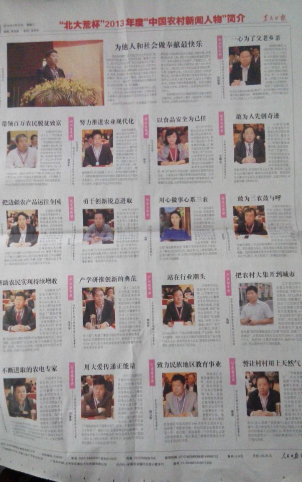 此次“中國農(nóng)村新聞人物”大型公益評選活動由農(nóng)民日報(bào)牽頭,聯(lián)合中央多家新聞單位共同組織,評選產(chǎn)生了為我國“三農(nóng)”事業(yè)領(lǐng)域做出杰出貢獻(xiàn)的18名代表人物。